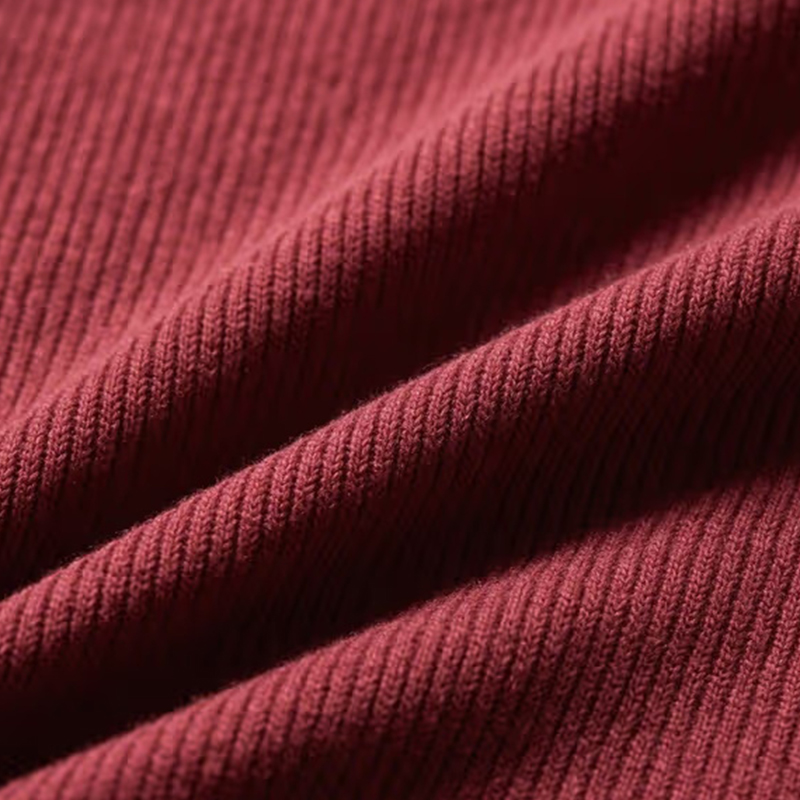 1*1 Ribbed Velvet Fabric on kangas, jossa käytetään 1 neula ylös 1 neula alas kudontaprosessia ja pinta on päällystetty hienolla sametilla (hieno sametti), jolla on erinomainen lämmönkesto ja pehmeä kosketus. Sen uurrettu kudontarakenne tekee kankaasta erittäin joustavan, istuu tiiviisti ihoa vasten ja tarjoaa mukavan käyttökokemuksen, soveltuu erityisesti käytettäväksi kylminä vuodenaikoina. Kankaan samettipinta ei ole vain pehmeä ja herkkä, vaan se lisää myös mukavuutta ja voi lukita tehokkaasti lämpöä ja estää kylmän ilman pääsyn sisään. Tällä kankaalla on vahva lämmönsuoja ja se sopii talvivaatteisiin, erityisesti villapaitojen kauluksiin ja leggingsien vyötärönauhaan, mikä tarjoaa lisälämpöä ja tukea näille osille. Sen 1*1-joustorakenne antaa kankaalle paremman joustavuuden, jolloin kangas voi laajeta ja supistua vapaasti, mikä varmistaa istuvuuden ja mukavuuden käytön aikana.